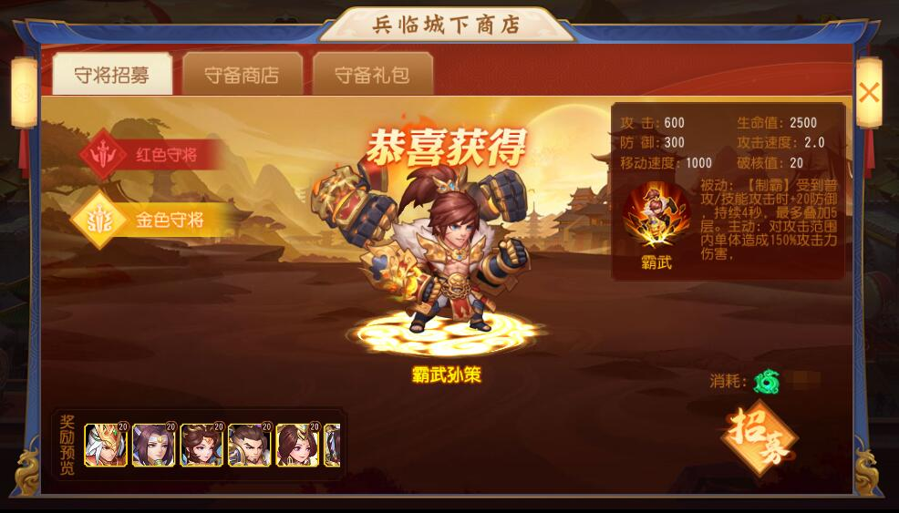 1、活动期间,主公需要获取守将并进行培养,以击退来犯的敌军或与其他主公进行对抗获得奖励。