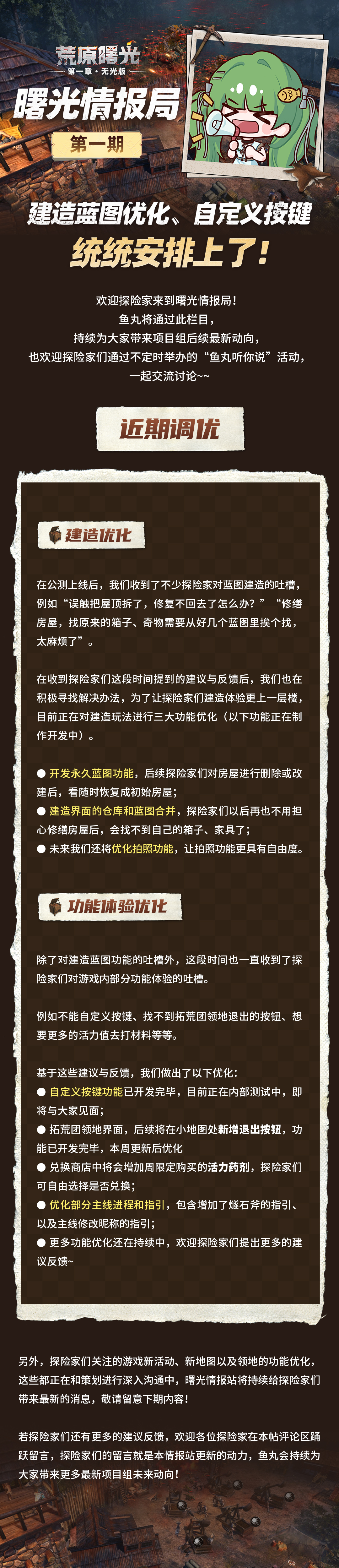 曙光情报局 | 建造蓝图优化、自定义按键,统统安排上了!