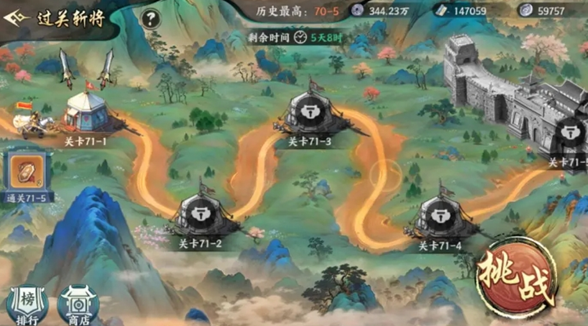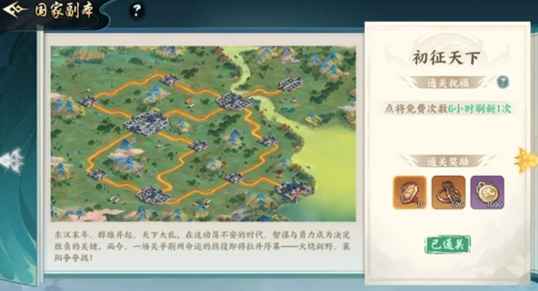 2)过关斩将。(通关主线5-15解锁,约半个小时)主要的点将令产出途径,通关每个关卡第5节均可获得点将令,越往后点将令越多,约累计能拿1000+点将令。(首日至少40+)