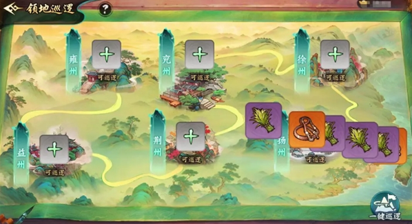 7)领地巡逻,每12小时收取1次,随机获得道具(包括点将令),并且可直接获得巡逻将领的碎片,上阵主将快速获得碎片的方式之一。