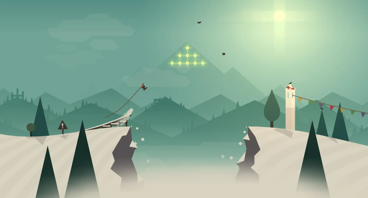 整个游戏的画面的场景布置全部是以雪景为主的,玩家需要操控自己的阿尔托角色在这个陌生的雪景世界里面进行探索,天气的变化都是非常逼真的,还有一些的隐形角色等待着玩家去探索和解锁,可以与他们进行对话,每完成一次滑雪任务之后,便会获得丰厚的奖励,还可以与雪景中的圣诞老人进行追逐,看谁在雪里的速度更快。