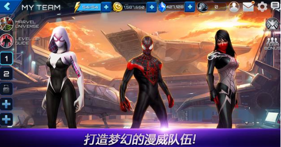 游戏是由大家比较熟悉的漫威漫画为基础所打造,你可以成为里面大家耳熟能详的角色,还有特别庞大的世界观,以及华丽的动作展现。为了可以让更多的游戏爱好者在这里面成为更强大的英雄,除了支持在众多的人物当中自由的选择,通过不断的提升等级以后,也可以组建厉害的队伍。通过打造梦幻般的漫威队伍以后,可以让大家在面对各种对手的时候轻松解决。
