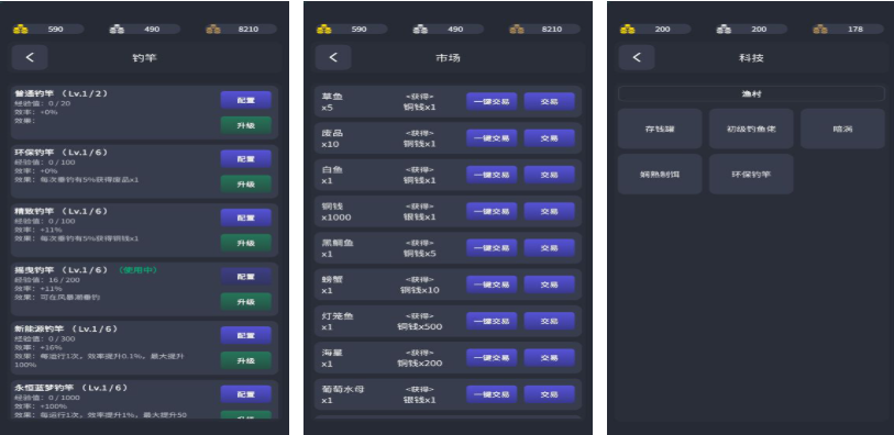 《垂钓四海:前传》采用创新的文字交互式垂钓机制,通过关键词选择、时机判断与资源调配推进进程。玩家需在不同文本情境中决策鱼饵类型、钓组搭配、出钓时段及应对突发状况(如断线、缠绕、暴风雨),每次选择直接影响渔获种类与稀有度。游戏内置成长型道具系统,鱼竿、鱼线、浮漂等装备随垂钓次数升级,解锁更高难度水域与传说鱼种。文字描述注重生态细节,如“银鳞鲹成群掠过浅滩,尾鳍泛起冷光”等语句强化画面联想,适合偏好策略性与叙事沉浸的玩家。