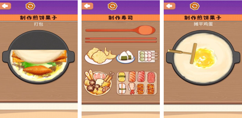 游戏以高表现力的萌系美术风格见长,煎饼在制作过程中会随火候与翻动节奏呈现拟人化表情变化,增强操作反馈趣味性。触控响应经过深度优化,摊饼动作丝滑流畅,支持多点手势精准控制面糊铺展面积与厚度。内置煎饼造型编辑器,可自定义圆形、心形、星形等基础轮廓,满足创意表达需求。烹饪过程全程第一人称视角,强化临场代入感。