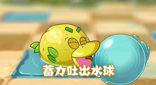 鸭梨植物能喷射水球,撞击僵尸时瞬间爆裂。