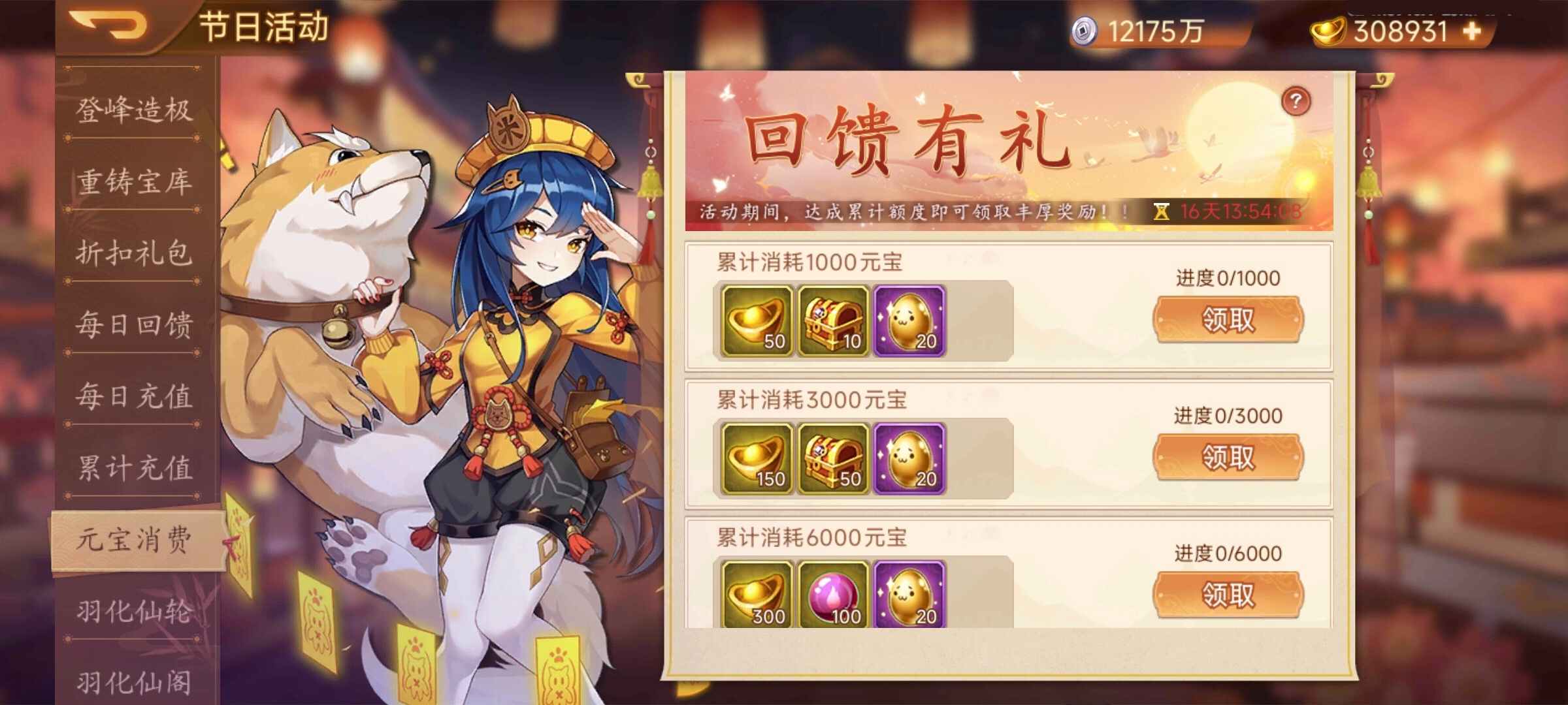 【活动6:元宝消费】起始时间 2025-12-19 10:00:00结束时间 2026-01-04 23:55:00活动内容:活动期间,累计达成消费额度即可领取奖励!