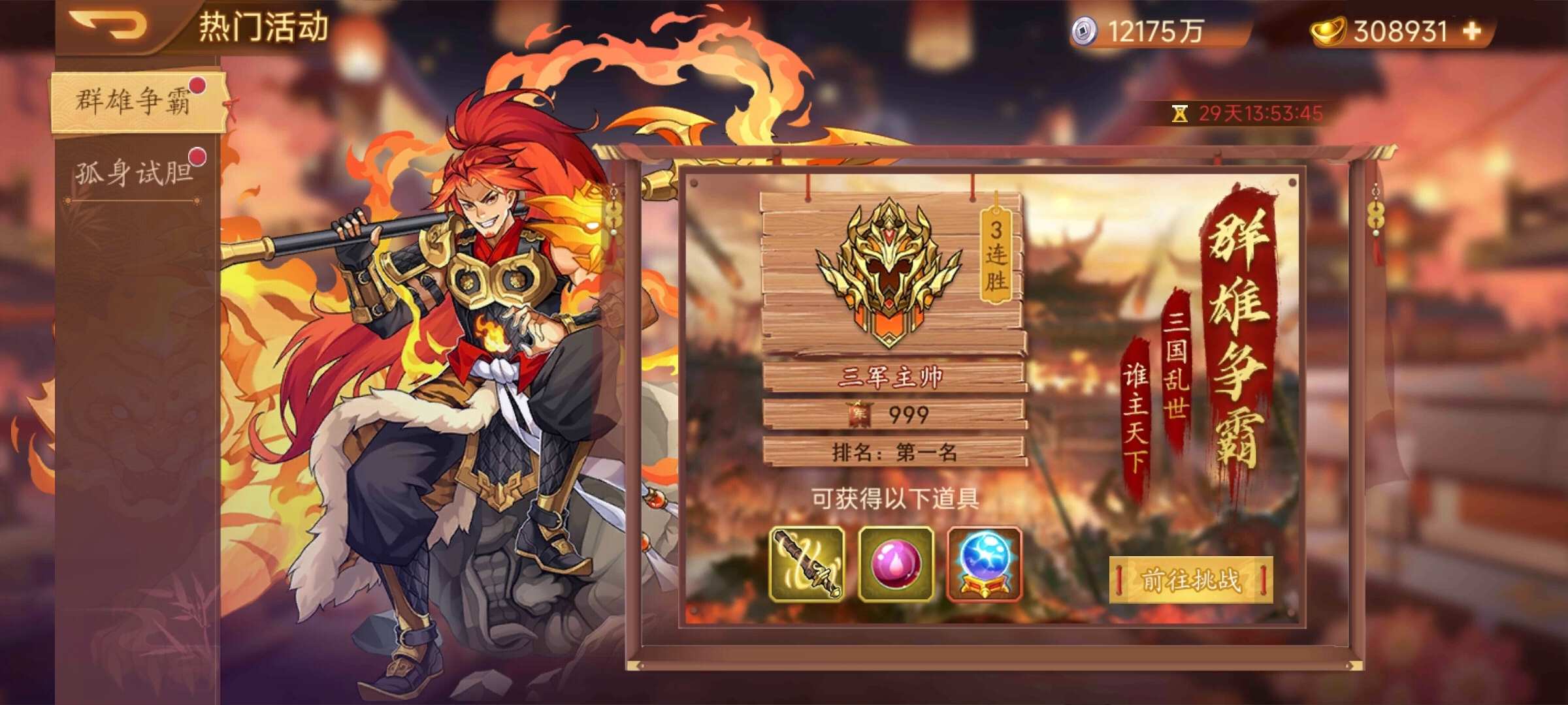 【活动4:群雄挑战】起始时间 2025-12-19 10:00:00结束时间 2025-12-25 09:50:00活动内容:活动期间开启限时副本挑战,活动副本共有7层,每层4关,每次过关可获得奖励。每日解锁一层可进行挑战。活动奖励:王双碎片,王双资石,进阶丹。