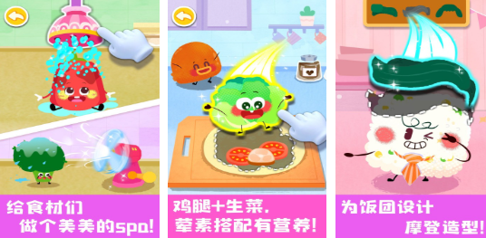 游戏将自然采集与简易烹饪融合:孩子可模拟挖地瓜、拔萝卜等动作,在互动中建立对根茎类食材的直观印象;切香蕉用“鳄鱼牙齿”工具,煎饼成型配动态反馈,最终端出香蕉飞饼、胡萝卜饭团等成品。动物助手全程陪伴,支持邀请森林伙伴共进餐点,强化社交情境与正向反馈体验。