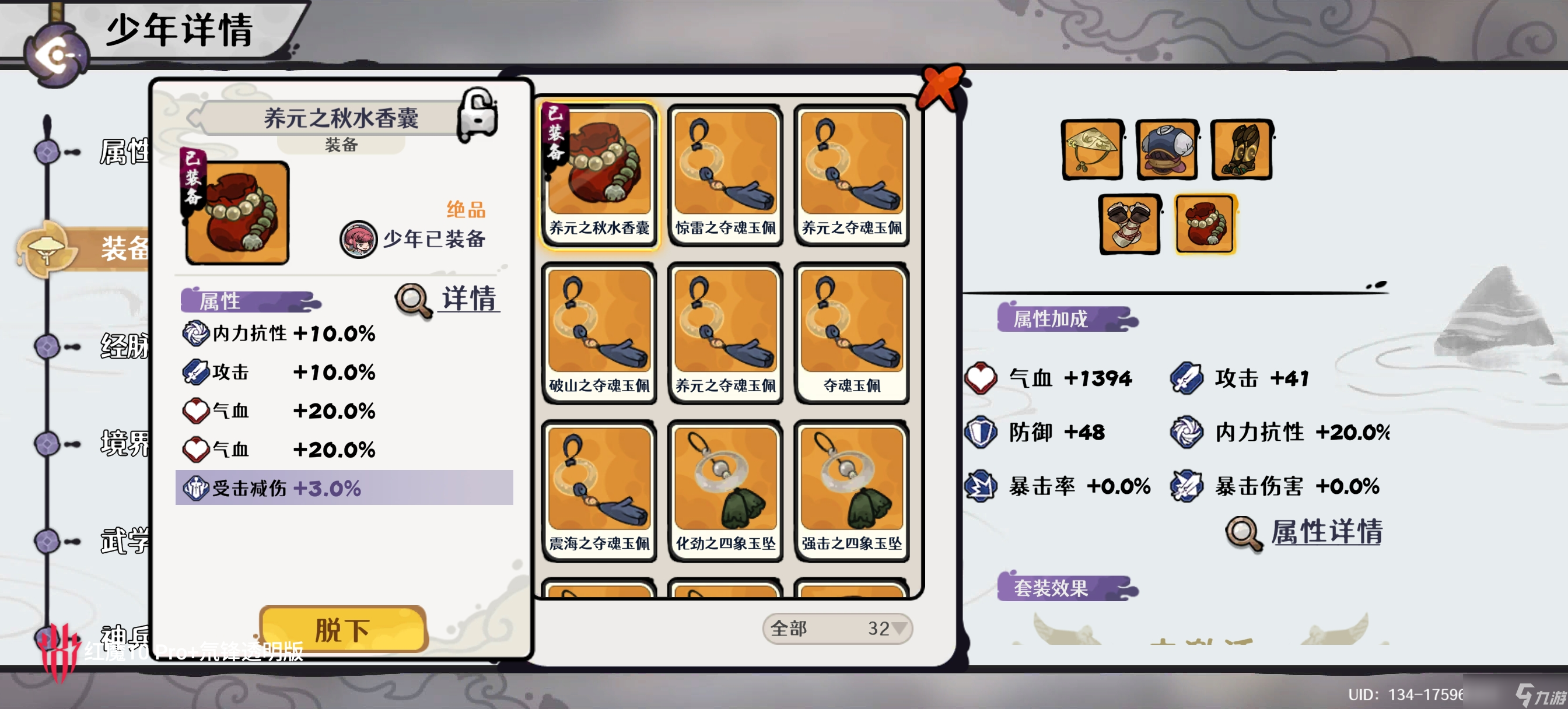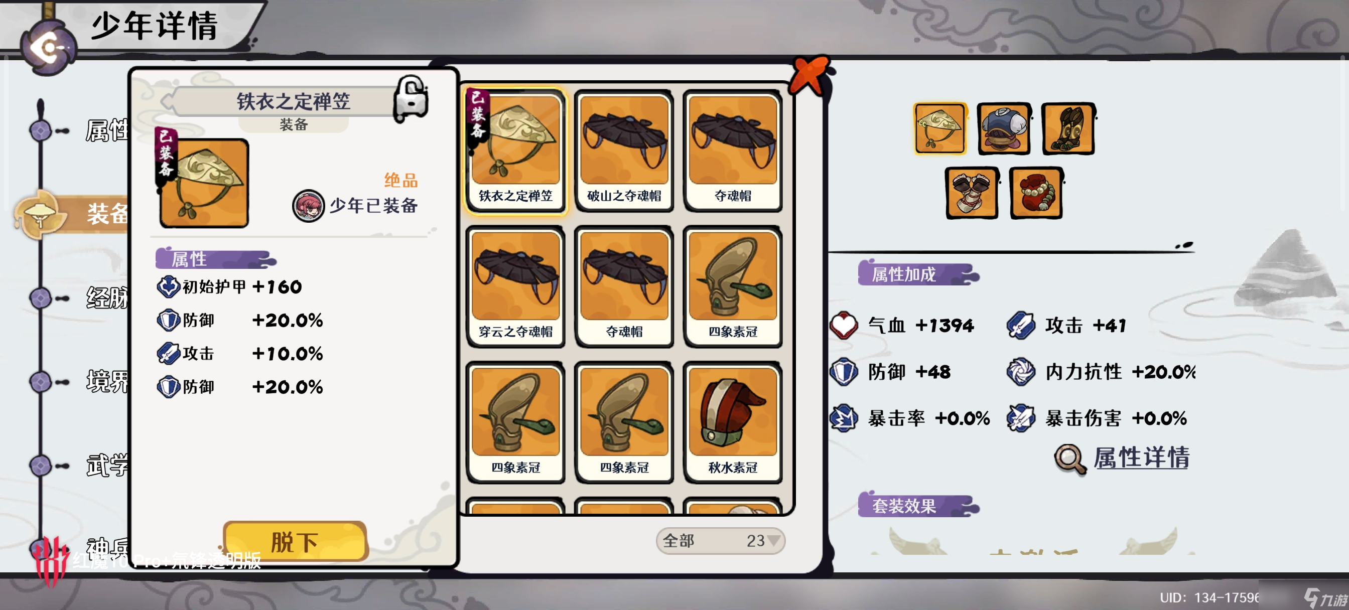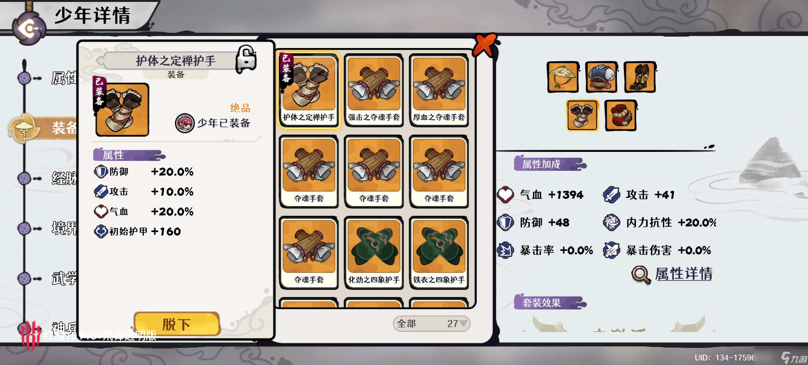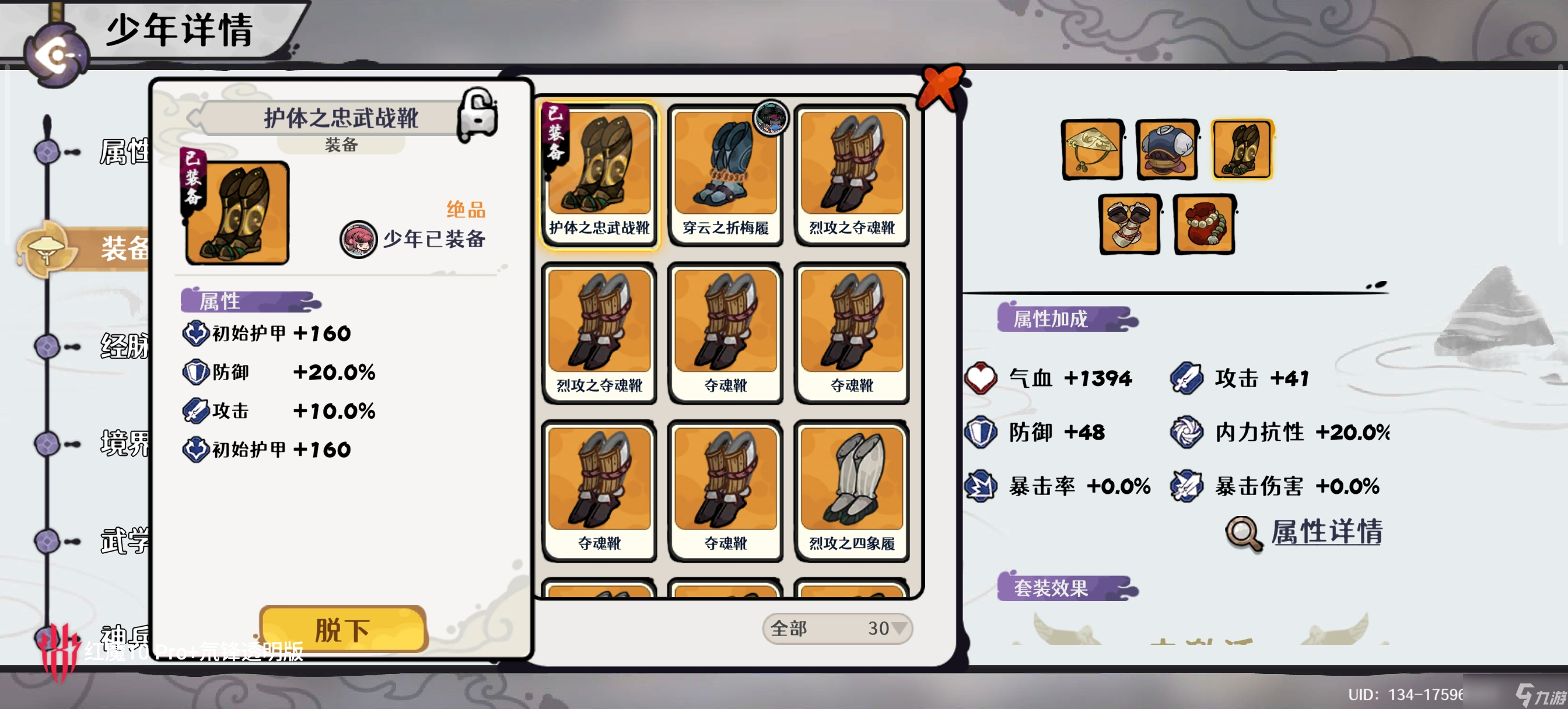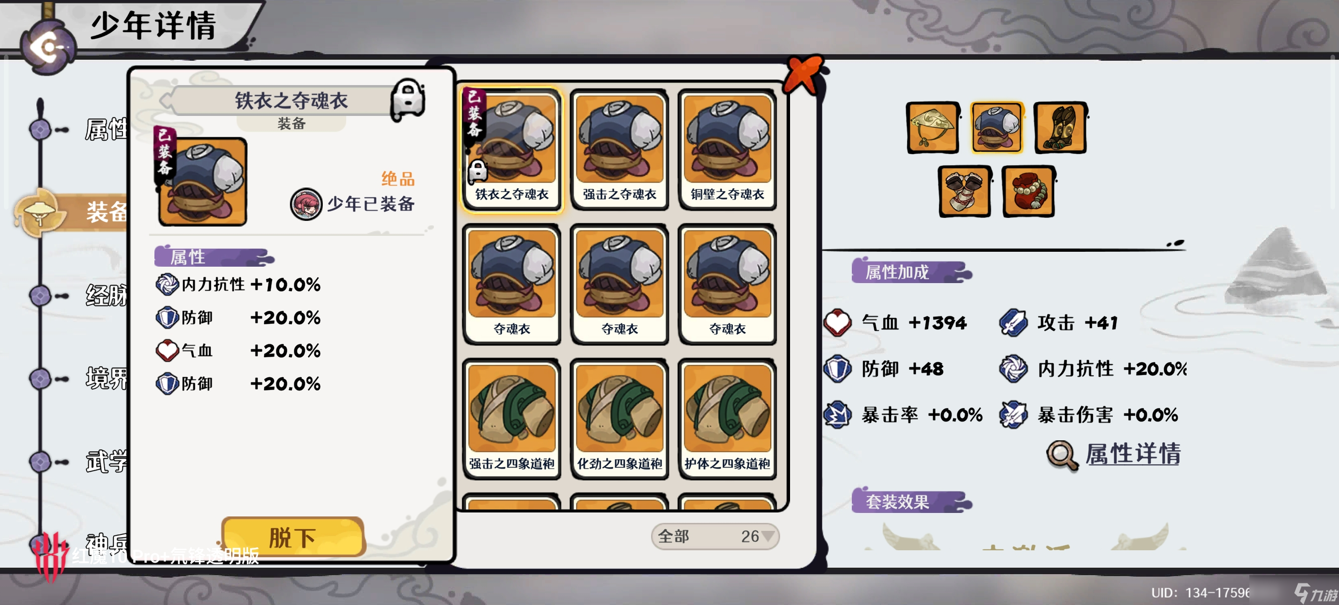 少年装备选择 血量+防御的装备,能站住即可 不需要任何输出