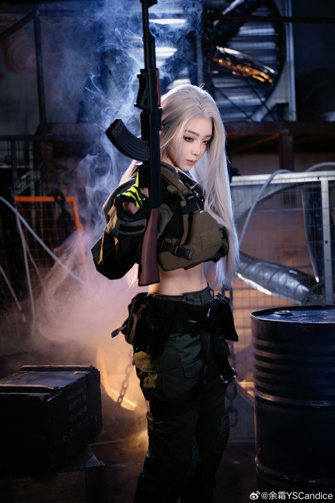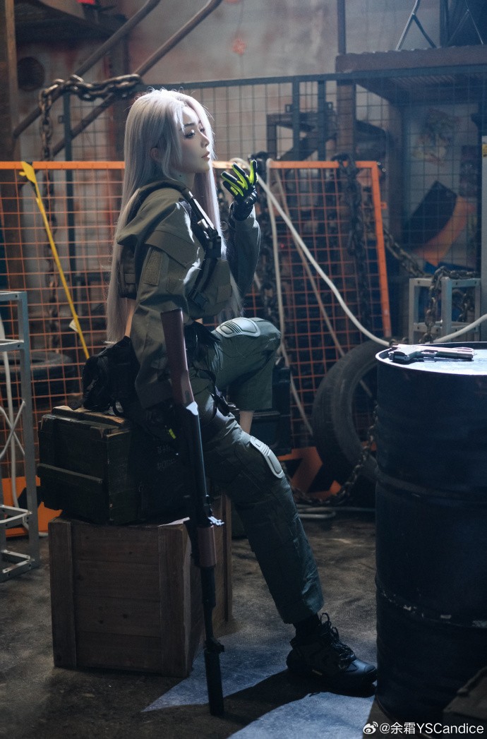 余霜COS《暗区突围》美图 白发侧颜超美丽