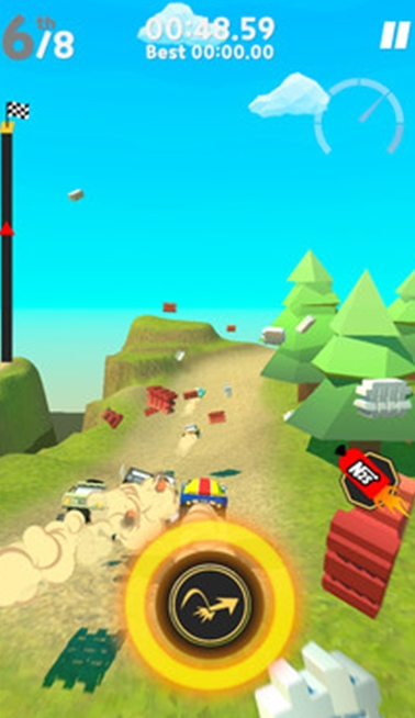 本作采用写实风格渲染,赛道光影与车辆材质细节在当年属中高端水准。操作逻辑简洁直观,仅需滑动屏幕控制横向位移,核心难点在于预判障碍节奏与道具释放窗口。游戏中设有氮气加速、磁吸干扰、护盾防御等多类功能型道具,合理组合使用可显著影响竞速局势走向。多人同场对抗模式下,策略性远超单纯比拼手速。
