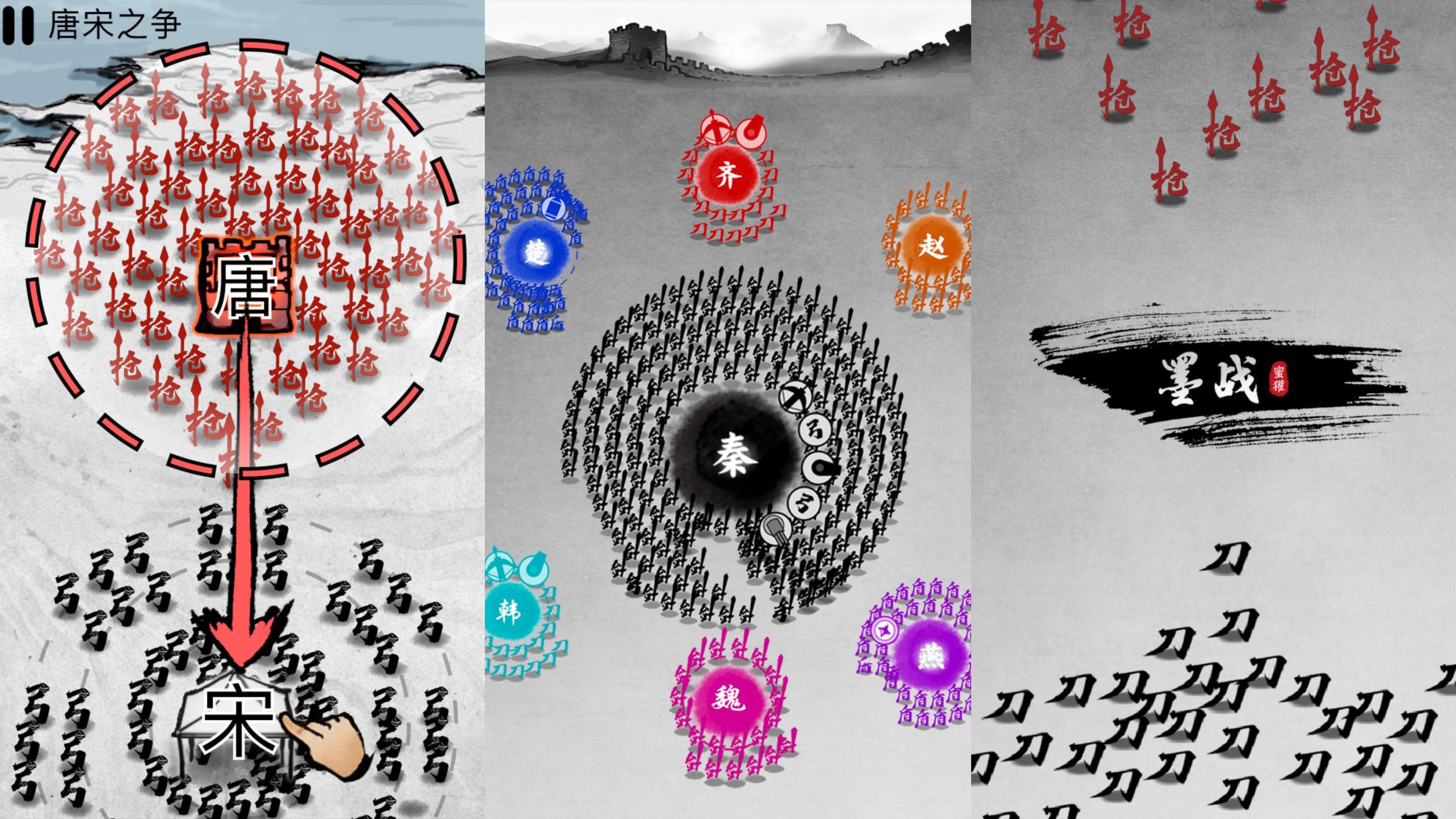 本作是一款文字驱动型水墨战争策略手游。玩家以统帅身份调度部队,通过点击操作下达行军、布阵、突袭等指令,在动态变化的战场环境中应对多阵营敌军。每场战役需结合地形、兵种克制与实时战况做出判断,强调战术思维与临场应变能力。整体界面极简,以墨迹勾勒疆域轮廓,以朱砂标示关键节点,呈现“计出于墨,胜生于势”的古典兵家美学。