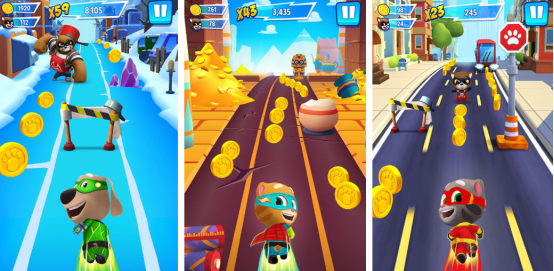 本作基于全球知名IP“汤姆猫家族”深度开发,安吉拉、汉克狗等经典形象悉数化身超级英雄,在多变赛道中展开高速奔袭。玩家需应对突发而至的列车、断裂路面、悬浮平台等动态障碍,通过精准点击或滑动完成跳跃、下蹲与翻滚动作。游戏内置金币收集系统,所获资源可用于修复并升级家园场景,涵盖中国古城风貌、都市楼顶秋千等十余种主题地图,支持自由切换。