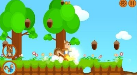 以拟人化松鼠为主角,主打轻松明快的休闲风格。玩家需在森林密道、山地斜坡等自然地貌中穿梭,收集坚果与松果,同时躲避盘旋老鹰、弹跳青蛙等生物型障碍。关卡采用随机障碍组合机制,配合向上轻点实现垂直起跳,操作门槛低但节奏变化丰富,适合碎片化时间游玩。