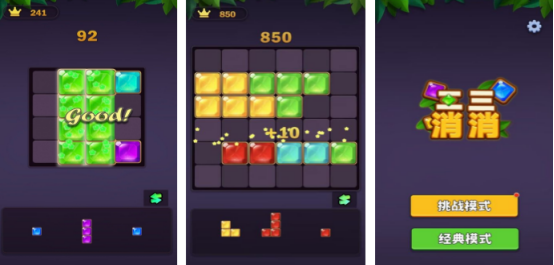 经典消除为主要的核心,其中也有两种不同的模式,分别是挑战模式以及经典模式。在这些玩法中都有丰富的剧情要求,甚至还有独特的关卡内容,就比如在每个关卡开始之后都有具体的时间限制,而大家需要用手指点击或者是拖动的方式,自由放置方块,将整行或者是整列填满之后就可以快速消除。屏幕最下方会看到不同形状的方块呈现出来,正确放置,看似玩法特别简单,但是也比较考验大家的思维能力。