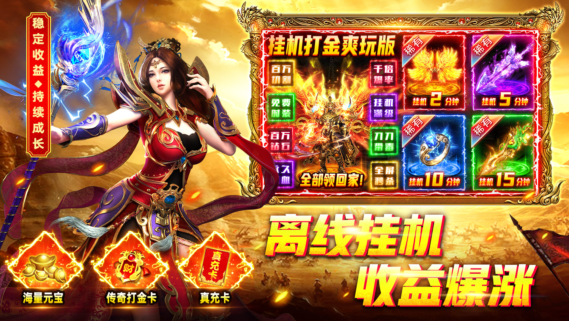 免费自动回收、全屏拾取全面开放,装备全靠打,打怪就送真充红包,挂机也能稳定收益,散人轻松搬砖!