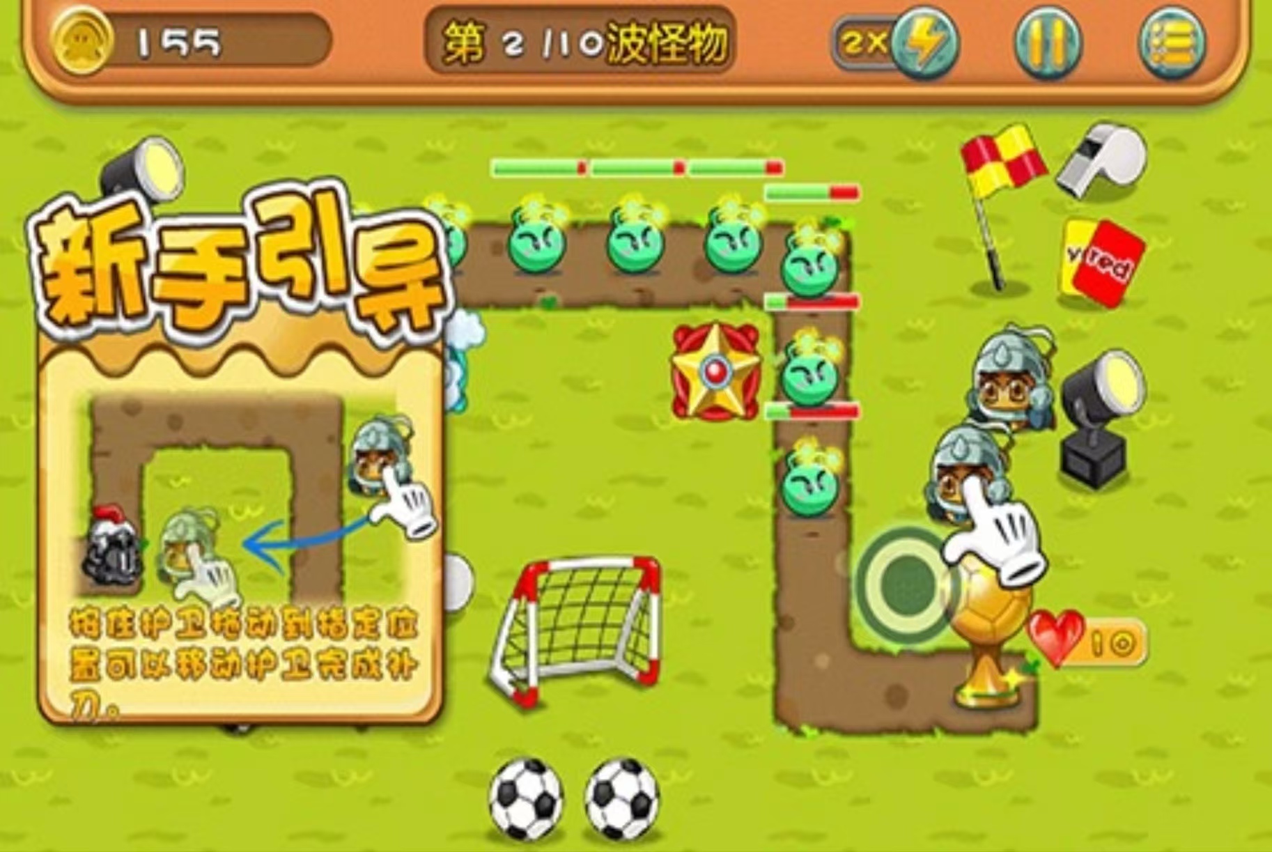 《畅游世界杯》将进入到激烈的世界杯比赛中,会看到非常多的小怪兽出没,玩家将使用很多可爱的宠物参加挑战。提供了一个非常丰富有趣的游戏玩法,每一个小动物角色都身怀不同的技能,并且能够用到的道具也很丰富。将塔方法和足球游戏进行结合,可以控制人物的动作和方向,需要玩家足够灵活的控制按键,是一款充满创意和挑战性的游戏。