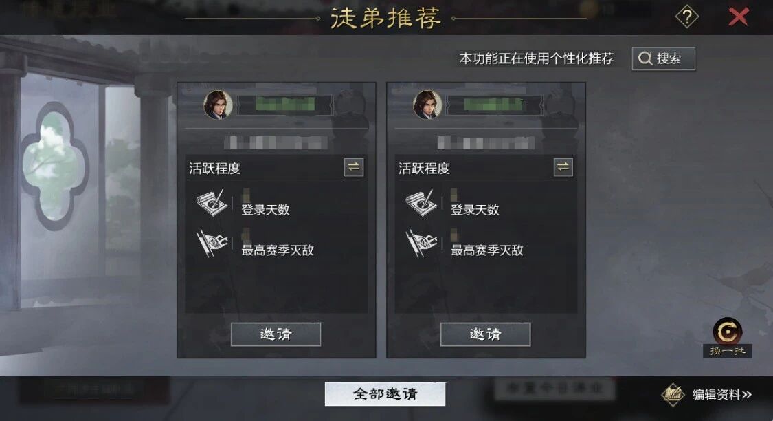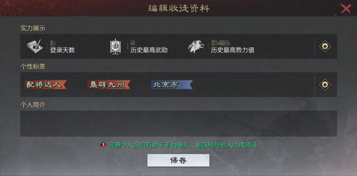 主公可以通过在招募平台编辑自己的个人简介,以获得更多的曝光度,从而吸引更多玩家拜入门下学习。