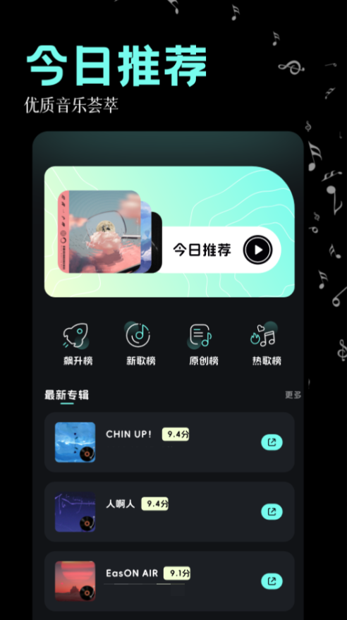 轻量化的免费音乐软件,不需要累积时长,也不用做任务看广告就能在音乐的世界随意翱翔,可听的曲目类型多音乐补充齐全,平台还签约了非常多原创歌手上传自己的原创曲目,喜欢的话还能收藏他们的专辑成为粉丝随时关注更新,系统都会根据你平时爱听的曲目类型来推荐音乐。