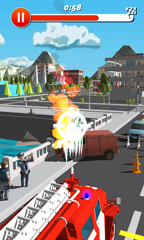 在《消防车3D模拟》里,玩家会变成一名勇敢的消防员,开着炫酷的消防车在城市的大街小巷里狂飙。游戏画面非常精致,3D的效果使每一个火灾场景都活灵活现,好像燃烧的火焰就在眼前。在游戏中每一次转向、每一次加速都会让人感觉像是处在紧张的救援现场一样。选择最佳的行驶路线以及使用适当的灭火器都很重要。当火焰在远处肆虐的时候,玩家要快速判断出哪个角度的水枪喷射可以更好地扑灭火焰。