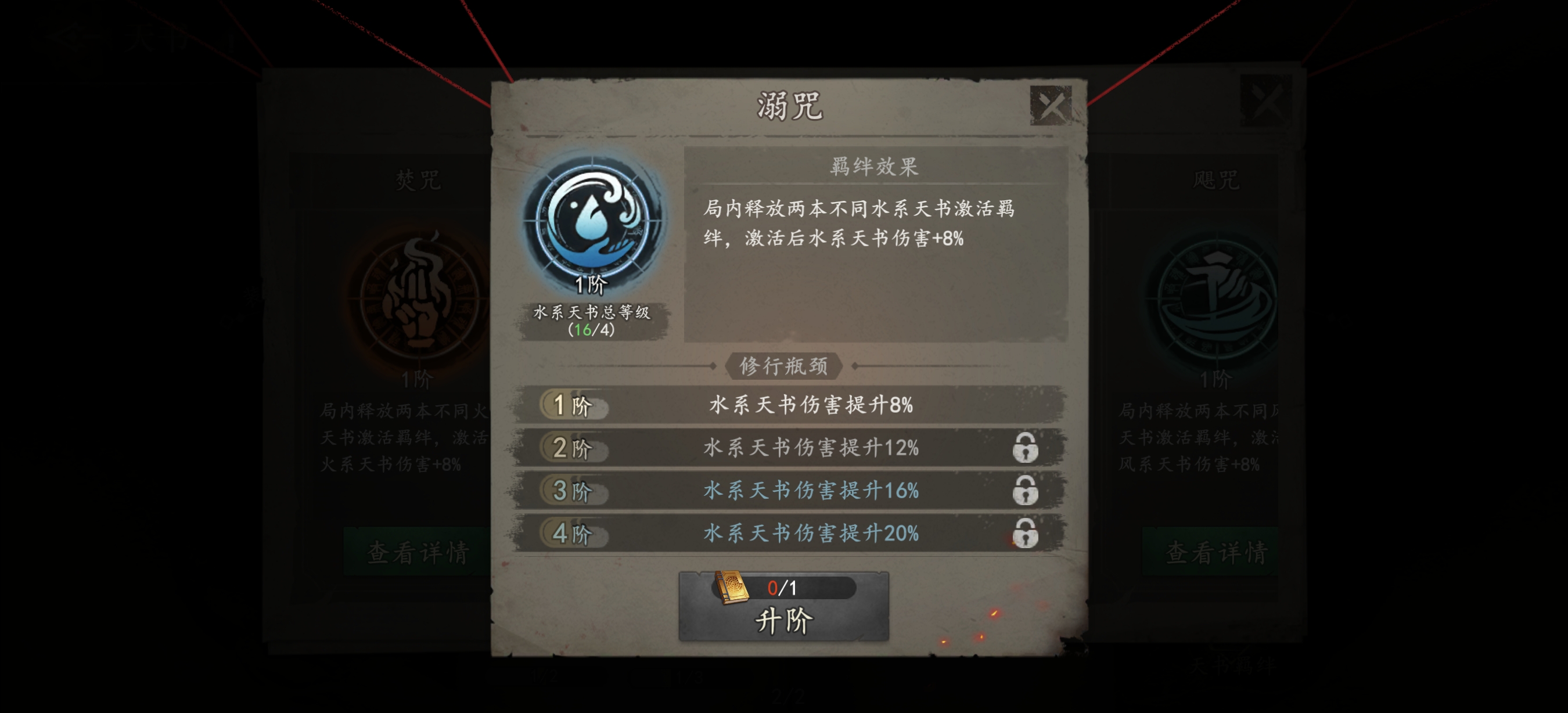 只需放两个同元素的不同天书就能达成,1阶就有8%的对应元素天书增伤,升满8阶更是有36%,这次数值意外还给挺高(虽然升级道具肯定不好搞)
