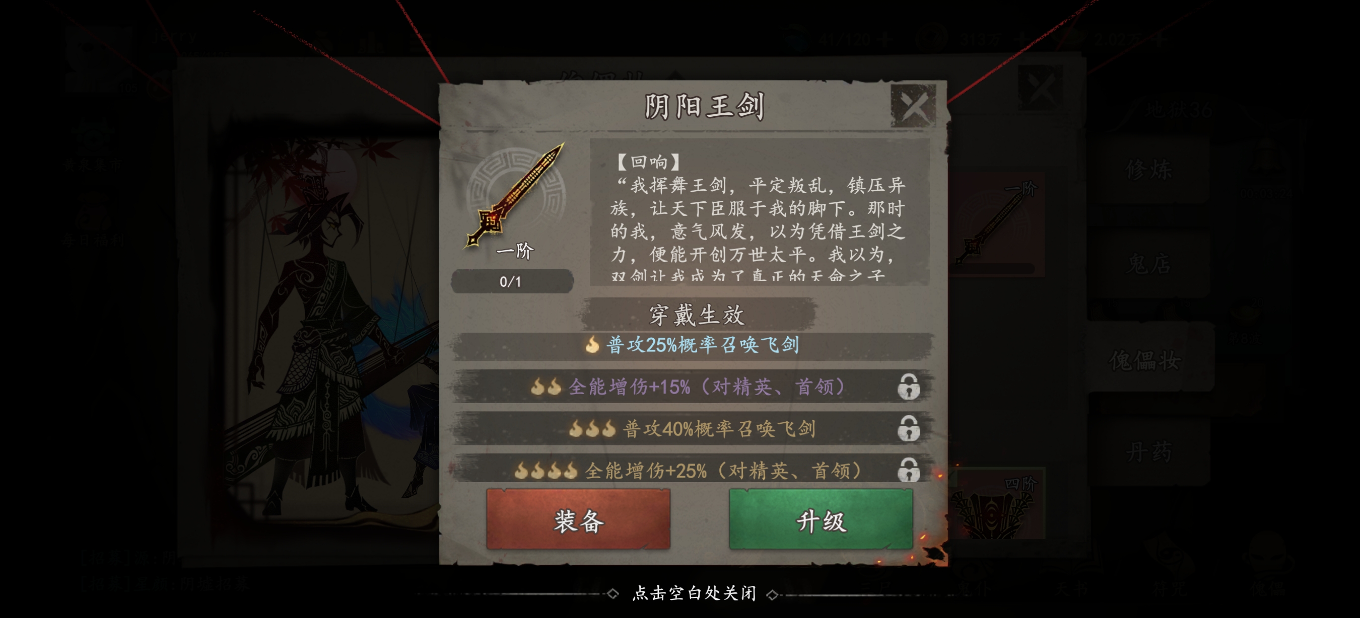 武器:有二阶及以上的王剑带王剑,不然带扇子