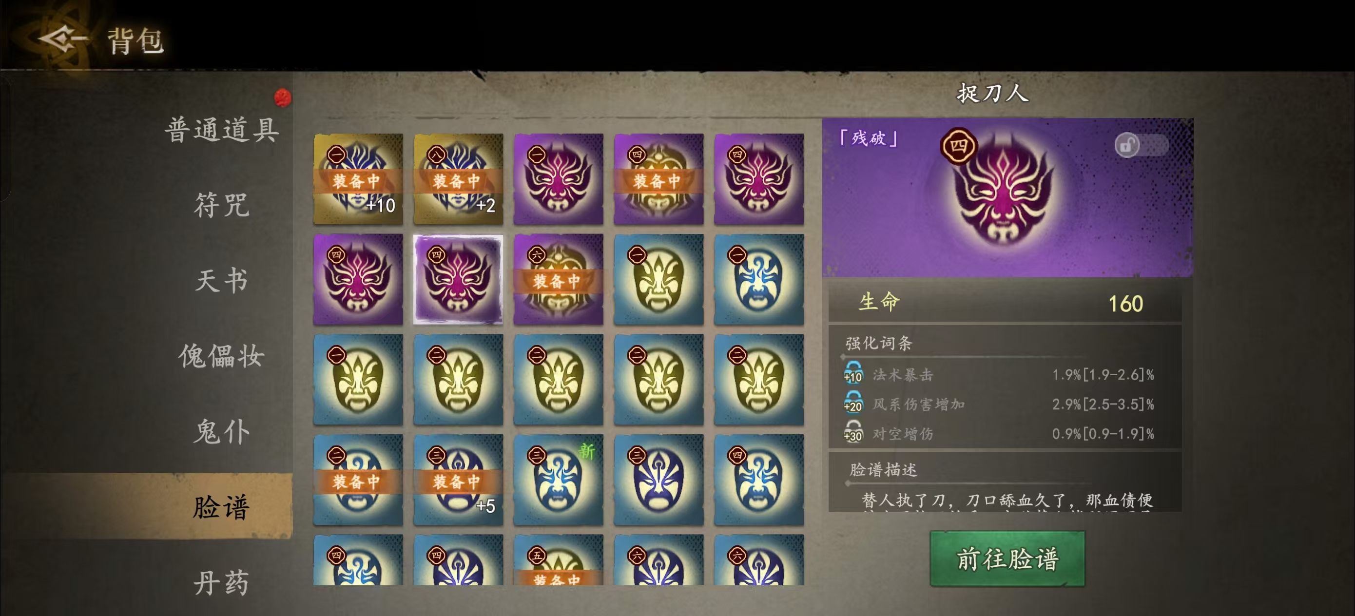 比较坑的是每个脸谱,每次出的词条属性都不一样,N中词条组成,要想4词条极品、无底洞啊。
