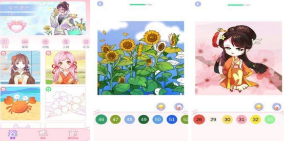 结合了创意表达、休闲减压等多种特点,采用直观的触控操作,所有玩家只需点击相应的数字区域,应对颜色进行填充,而全面降低具体的绘画门槛,对于各年龄段用户来说,都能够快速入门,在此作品中,不仅能够按照数字提示填色,还能任意调整色彩搭配,保留的作品能够制作成为短视频。
