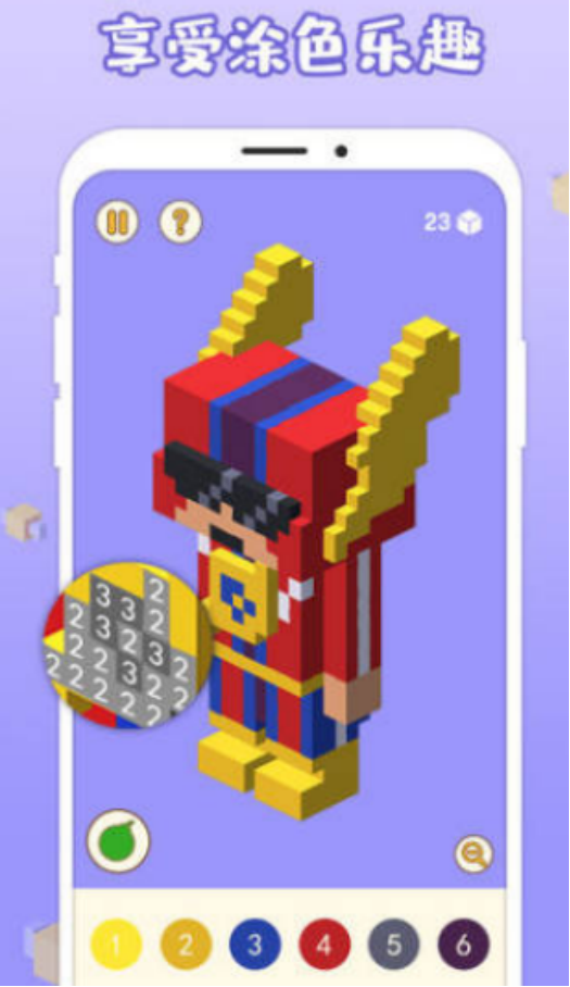 填色为核心的休闲类作品,新增海量免费模板,也可直接将手机当中保存的图片或者照片上传到其中,最终完成填色,出色的3d像素模式,通过点击或者拖拽的方式自由上色,轻松实现360度立体观察与渲染。支持上传手机照片,最终生成完整的填色模板,通过智能算法将图片转化成为填色任务,全面降低具体的操作门槛。
