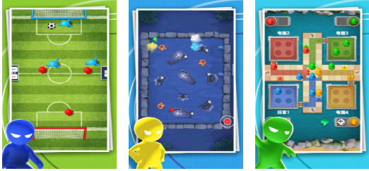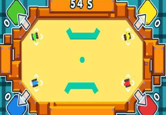 《多人竞技场》以四人同屏为核心设计,融合飞行棋机制与实时足球对抗等多元玩法,支持上帝视角俯视操作。地图色彩明快,界面响应迅速,任务组合丰富不重复,玩家在统一屏幕内协同或竞争,体验紧凑而富有张力的短局对抗。