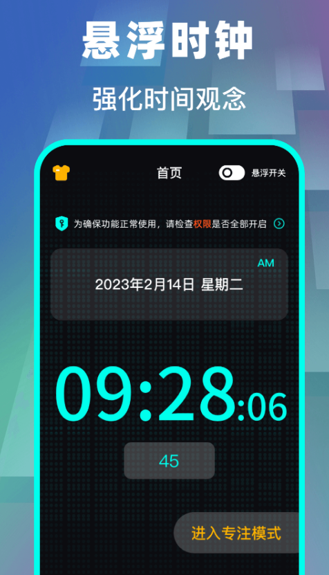 采用轻量级悬浮窗架构,无需解锁屏幕即可完成多数操作。基础功能涵盖秒级倒计时、多组闹钟设定、快捷记事便签;外观层面支持全图层背景替换,包括动态壁纸适配;主题商店按昼夜节律划分模板库,白天模式强调清晰可读性,夜间模式则启用护眼低亮度与深色滤光,滑动切换响应速度控制在300毫秒内。