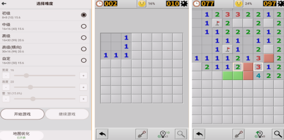 经典端游中的扫雷全新升级,选择多种不同难度,可任意自定义设计,在流畅体验的伴随之下,快速完成推理扫雷,考验玩家的智慧以及思维策略和反应能力,具有完整的自动保存机制,即便是突然间退出,也无需担心游戏进度会丢失,让你随时畅玩。