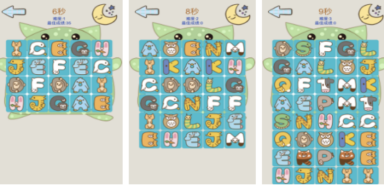 想要提高个人的智慧或者策略思维,不妨选择此作品,锻炼记忆力的翻牌游戏,难度循序渐进,每种难度都会直接影响卡牌的具体数量。每次开局都有10秒时间来记忆牌面的位置和相应的图案,当10秒钟结束之后,那么牌便会进入背面显示,玩家要在规定的时间内匹配所有卡牌,这样才能够完成挑战。