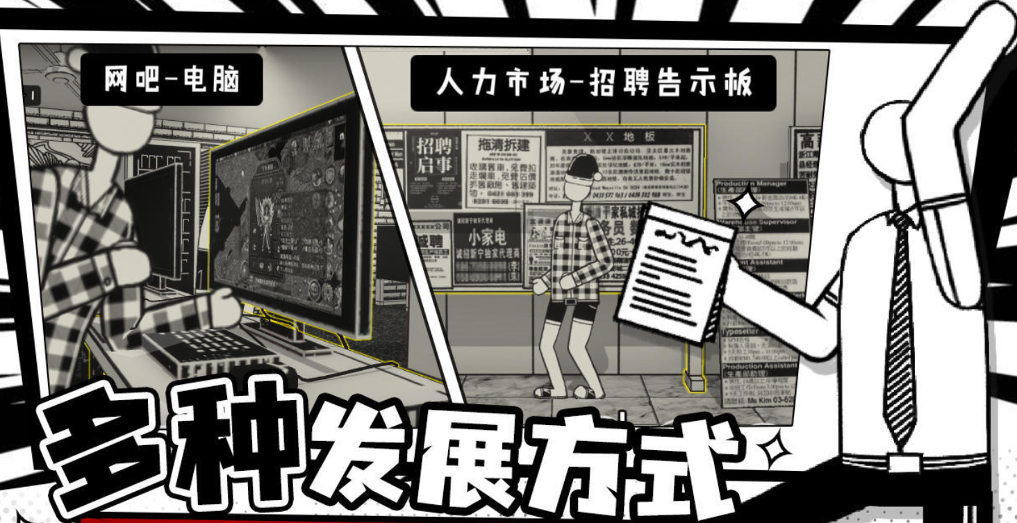 欢迎各位打工人进入本作慢慢看那感受当牛马的人生,本作为大家开发出形形色色的发展模式,你可以成为不同的职业并参与形形色色的工作,真实参与生存工作的游戏概念让整体耐玩性增加,而且这款黑白风格的2D手游辨识度也是很高的,工作机会多不胜数让每一个打工人都沉浸其中,极高的代入感也会让屏幕前的社畜玩家产生共鸣哟。