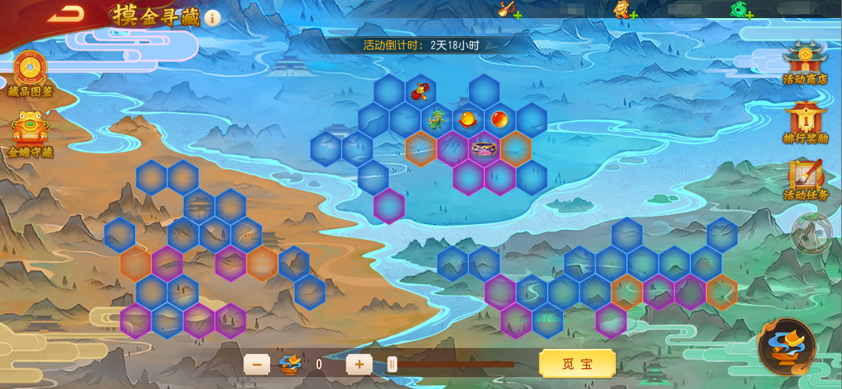2、主公通过完成活跃任务、商店购买等途径获得道具【铲子】,使用铲子可对地图中的指定格子进行觅宝,推进格子进度并获得奖励。