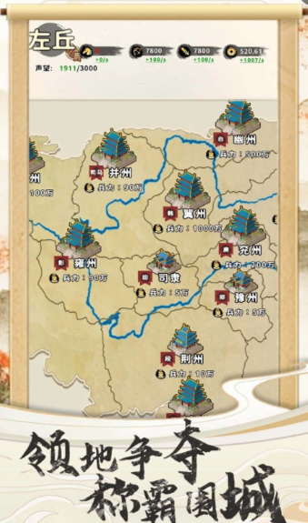 整体玩法围绕着三国时期的群雄争霸展开的,玩家需要从最基础的资源和城池开始建立自己的势力。在对战过程中不能只靠蛮力,还需要根据对手的阵容特点调整打法,抓住每一次可以利用的机会才能赢。游戏里还加入了副将玩法,选择合适的副将可以让主力阵容获得额外加成,另外,游戏对三国时期的人物形象和场景都做了细致还原。