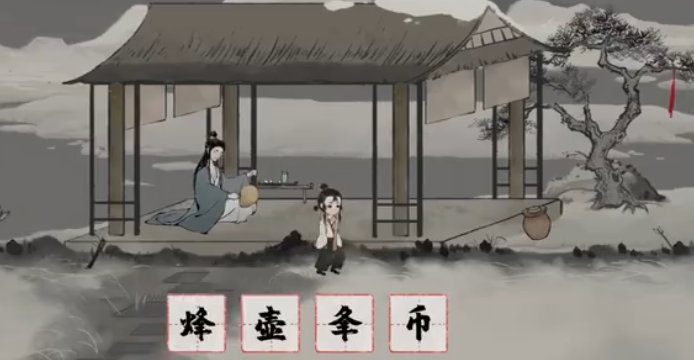 5、拆分【烽】,使用【火】融化亭子前的雪,拿走【币】。