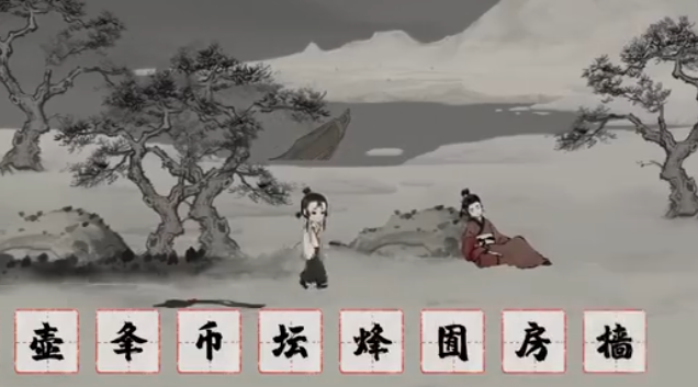 6、拆分【币】,拆分【囿】,拆分【有】,按下图组合两个部分得到【布】,给伤员包扎,向右走到头通关。