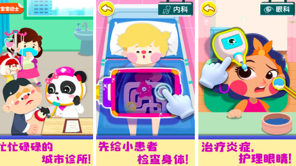 孩子生病很怕去医院,在奇妙就诊时光当中帮助小朋友们正确了解医院,养成良好的健康小习惯。可爱的q版动漫画风,直接化身为熊猫医生帮助病人检查身体,疾病过程通过动画进行趣味演绎,既可爱又能学习健康知识,在这里解锁有趣的三步急救法,让小宝们帮助更多小病人恢复健康吧。