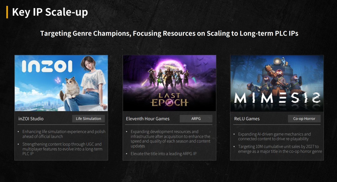 该公司部分破纪录的收入来自《inZOI》 ,这款于2025年推出的全新生活模拟游戏发售7天销量就突破了100万份。合作生存游戏《Mimesis》也值得一提,这款于2025年10月推出的抢先体验版游戏,在发售后的前50天内销量就超过了100万份。