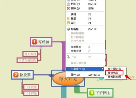 还可以点击鼠标右键,进行按优先级的主题排序选择,这样可以根据这些图表来指导每天的工作。(如下图)