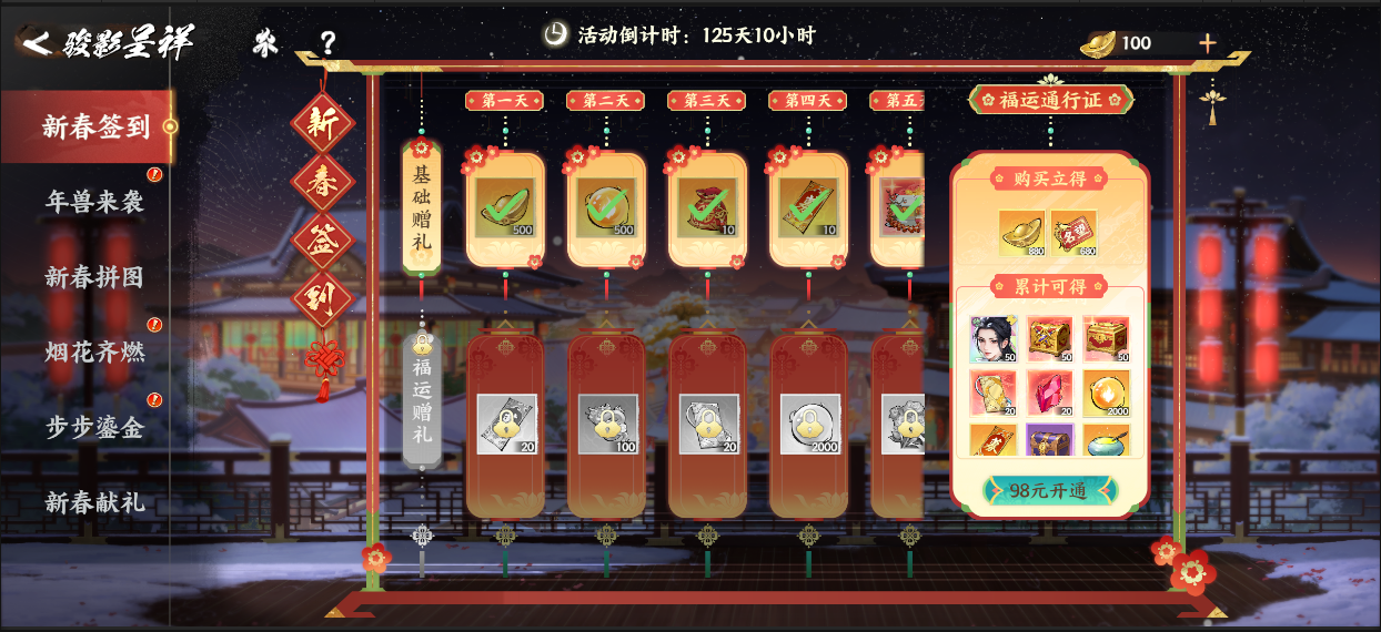 用途:在【新春献礼】界面中兑换各类奖励