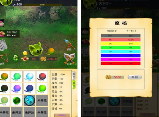 一款聚焦地下城探索的动作RPG手游。玩家操控可变形史莱姆角色,在随机生成的多层迷宫中穿梭,对抗魔物、破解机关、拾取遗落装备。初始阶段技能组有限,需通过击败精英怪获取技能晶核,解锁“分裂突袭”“酸液喷射”“拟态潜行”等进阶能力,并依据关卡特性动态调整技能配装方案。