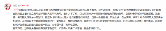 此外,官方发文回应称,本作并非简单基于《流星蝴蝶剑》的低成本改版,而是一款重剧情、高自由度、拥有18个结局的纯正武侠单机游戏,且完全免费。