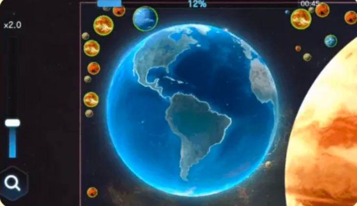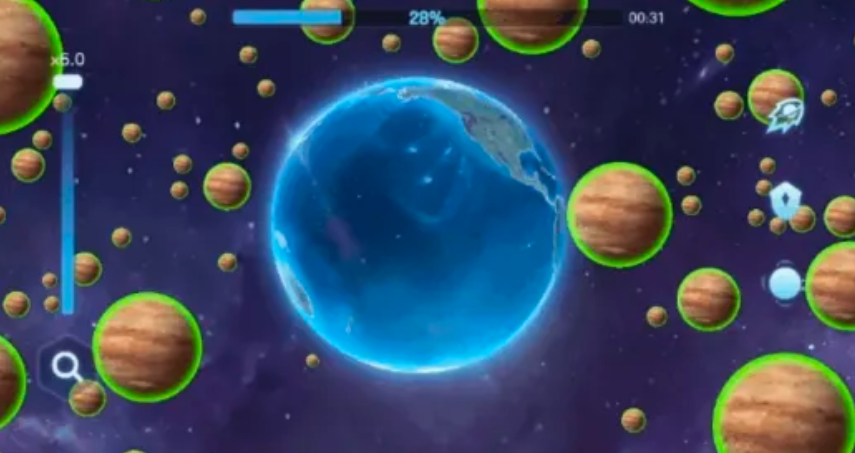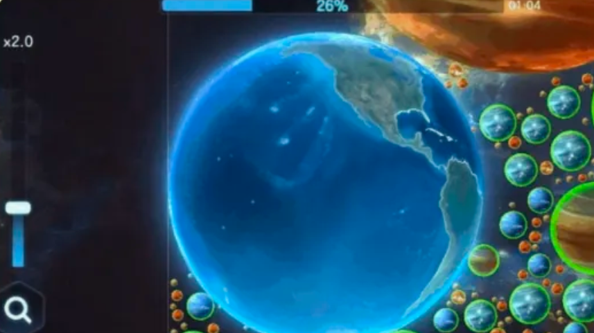 喷射速度可以自定义,随后都可以调节,当大家靠近体积小于自己的星球时,强大的引力会将其拉扯帮助轻松吞噬,自身也将得到成长,但要注意比自己要大的星球,判断好体积,保持安全距离非常关键。