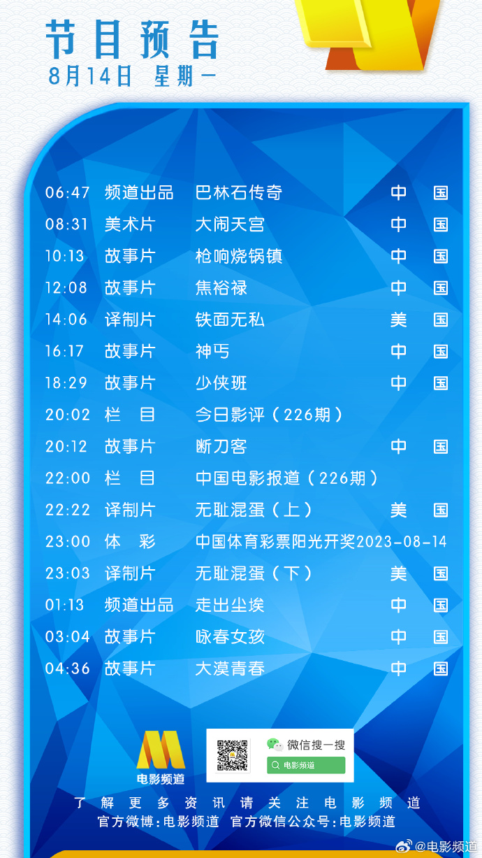 电影频道节目表8月14日