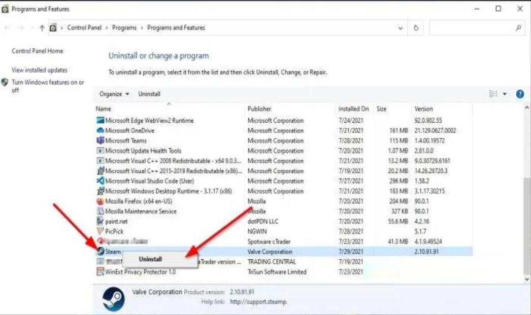 如果您碰巧安装了 Steam 客户端有问题;这可能会导致 Steam 错误 E502 L3。在这种情况下,您必须卸载有问题的流客户端,然后重新安装它,因为应用程序中损坏的文件可能会导致发生错误。