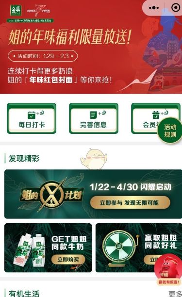 2、进入金典小程序后,点击最上面的活动进入,然后注册登录一下就行了