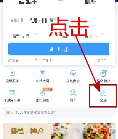 进入铁路12306APP的首页之后,点击页面菜单中的“全部”。