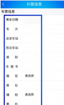 进入补登界面,点击右上角“添加”按键,然后输入需要补登的车票信息,按要求一一填写。